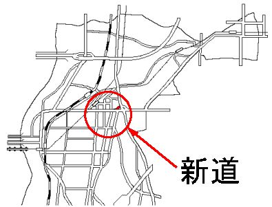 ![]() 新道にあった、おかし屋 (二葉軒)明治中ごろ 新道水道の図 |